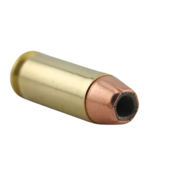 With a muzzle velocity of 1325 feet per second and 585 foot-pounds of energy, this load hits hard and dumps energy immediately on impact. Additionally, the soft lead core and gilding metal jacket are precision-scored inside and out to ensure rapid, uniform expansion—typically doubling in diameter. This controlled mushrooming reduces the risk of overpenetration while maximizing internal damage. Penetration falls between 9 to 15 inches in ballistic gel, placing it in the ideal range for defensive use.
