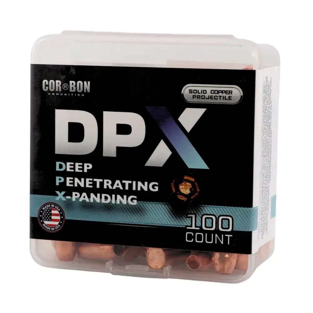 COR®BON’s .357 Sig 125gr DPX bullets are engineered for serious performance when used in properly developed hand-loaded ammunition. As part of our renowned DPX® (Deep Penetrating X-panding) line, this solid copper projectile delivers barrier-blind capability, 100% weight retention, and reliable expansion in real-world conditions. Additionally, unlike traditional hollow point designs that can clog with fabric or break apart when striking glass, DPX bullets perform through steel, auto glass, denim, and soft tissue while still maintaining their structure. Because of this, the projectile stays “barrier blind,” so you can count on consistent results when loaded within safe specifications.