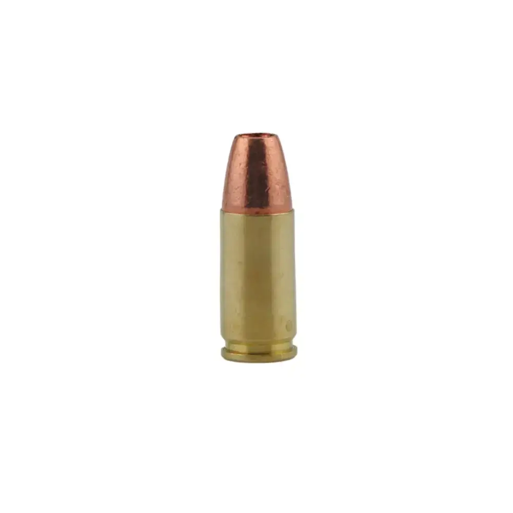 Firing at 1250 feet per second, this +P load creates 399 foot-pounds of energy from a 4-inch barrel. The solid copper bullet is lead-free and legal in restrictive areas, including California. It also offers cleaner shooting, less fouling, and longer barrel life.
